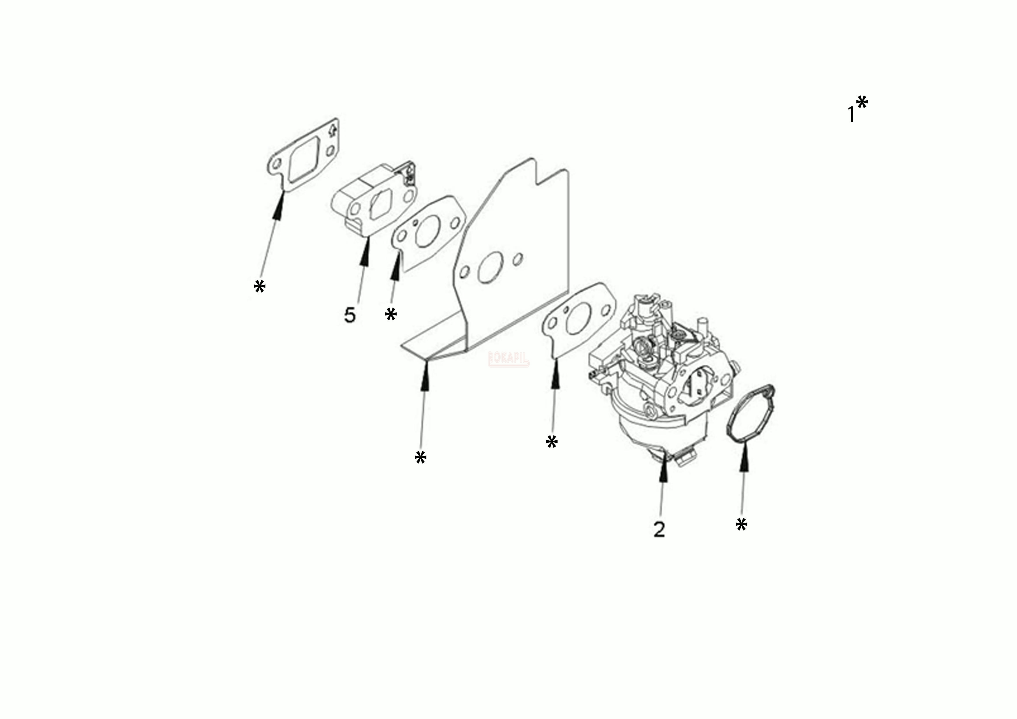 Gaźnik, izolator termiczny, uszczelka pod gaźnik- silnik K 805 OHV Emak - schemat