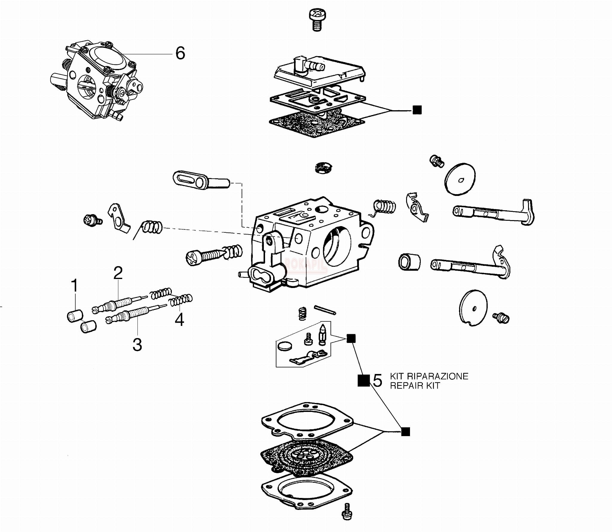 Gaźnik, zestaw naprawczy - części pilarki Oleo-Mac GS 520 - schemat