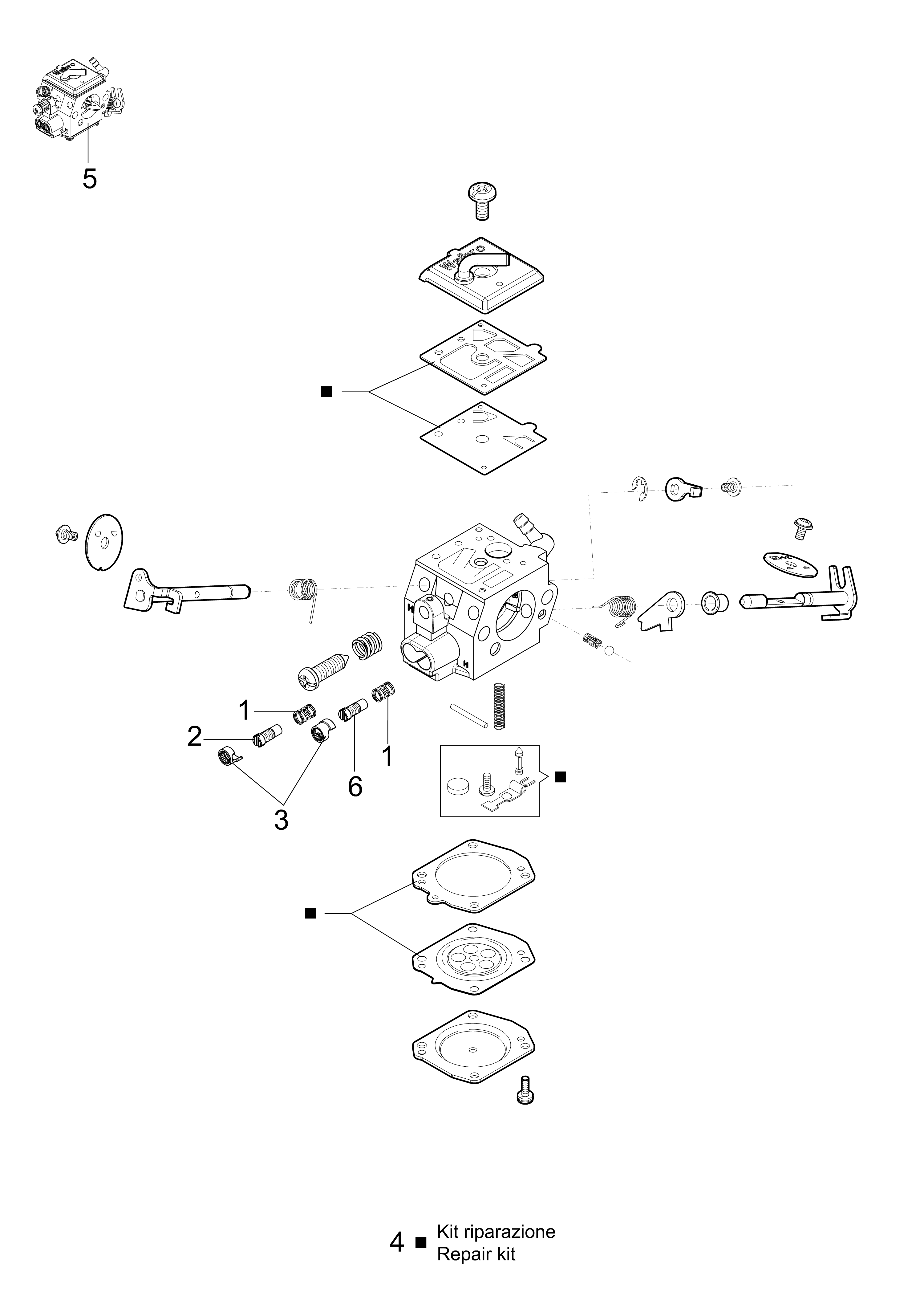 Gaźnik, zestaw naprawczy - części pilarki Oleo-Mac GS 651 - schemat
