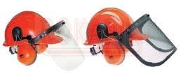 Kask ochronny z ochronnikami słuchu, osłoną siatkową i osłoną poliwęglanową