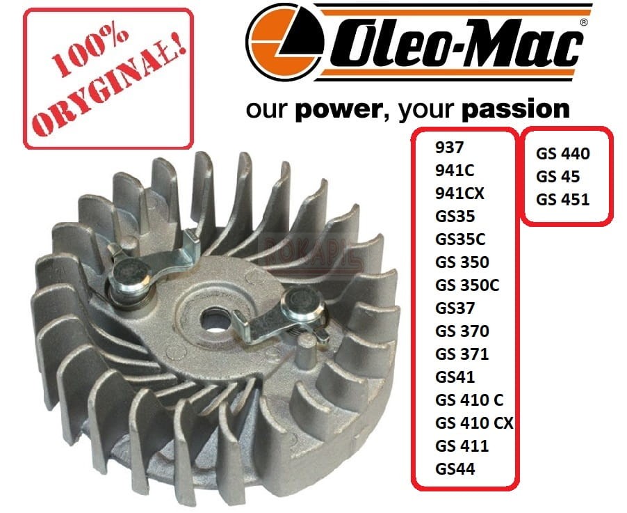 Koło magnesowe pilarki/ piły spalinowej Oleo-Mac 937, 941C, 941CX, GS35, GS35C, GS 350, GS 350C, GS37, GS 370, GS 371, GS41, GS 410 C, GS 410 CX, GS 411, GS44, GS 440, GS45, GS 451 - część ORYGINALNA!