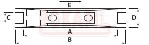 A = ? wew. koła - 127,00 mm B = ? zew. koła - 139,70 mm C = WYS. (WEW.) - 31,75 mm D = WYS. (ZEW.) - 38,10 mm E = ? otworu - 17,46 mm