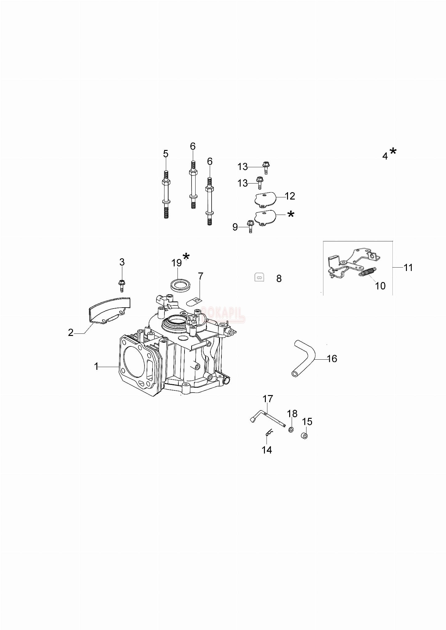 Skrzynia korbowa, uszczelniacz, hamulec magnesowy, sprężyna, zawór płytkowy, osłona zbiornika, koreki - kosiarki spalinowej Oleo- Mac G 44 TK (K500)- schemat