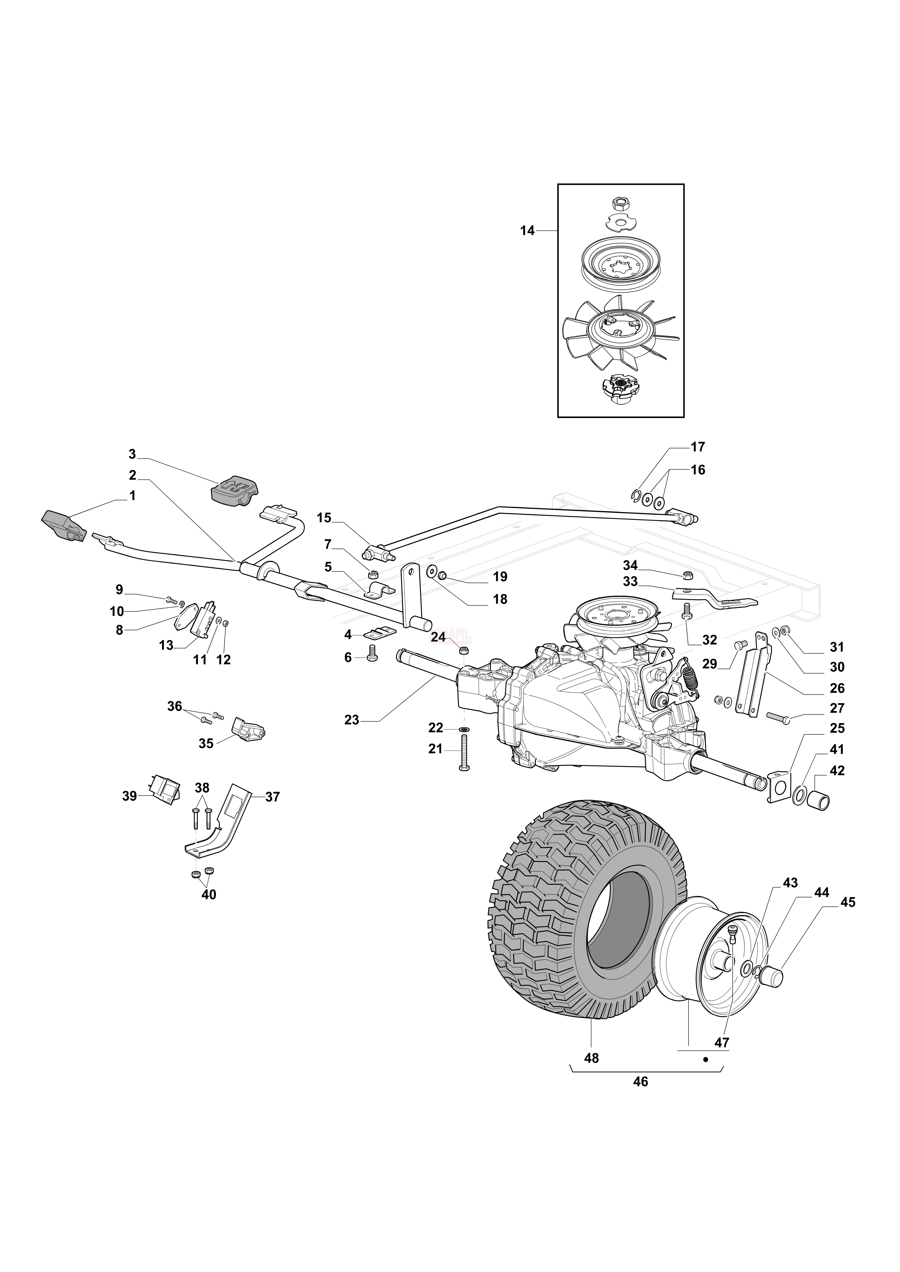 Sterowanie skrzynią biegów, Napęd kół - Schemat