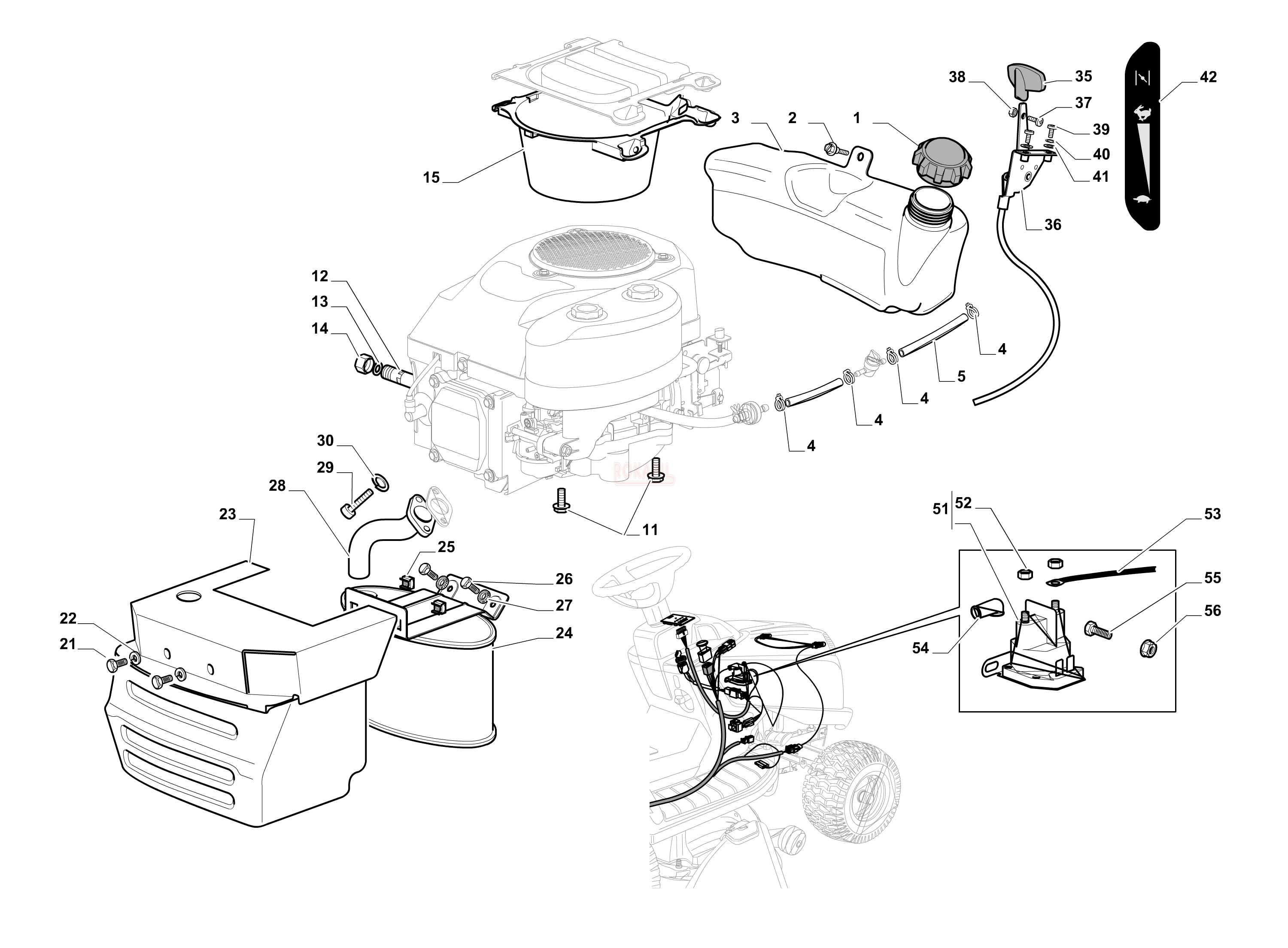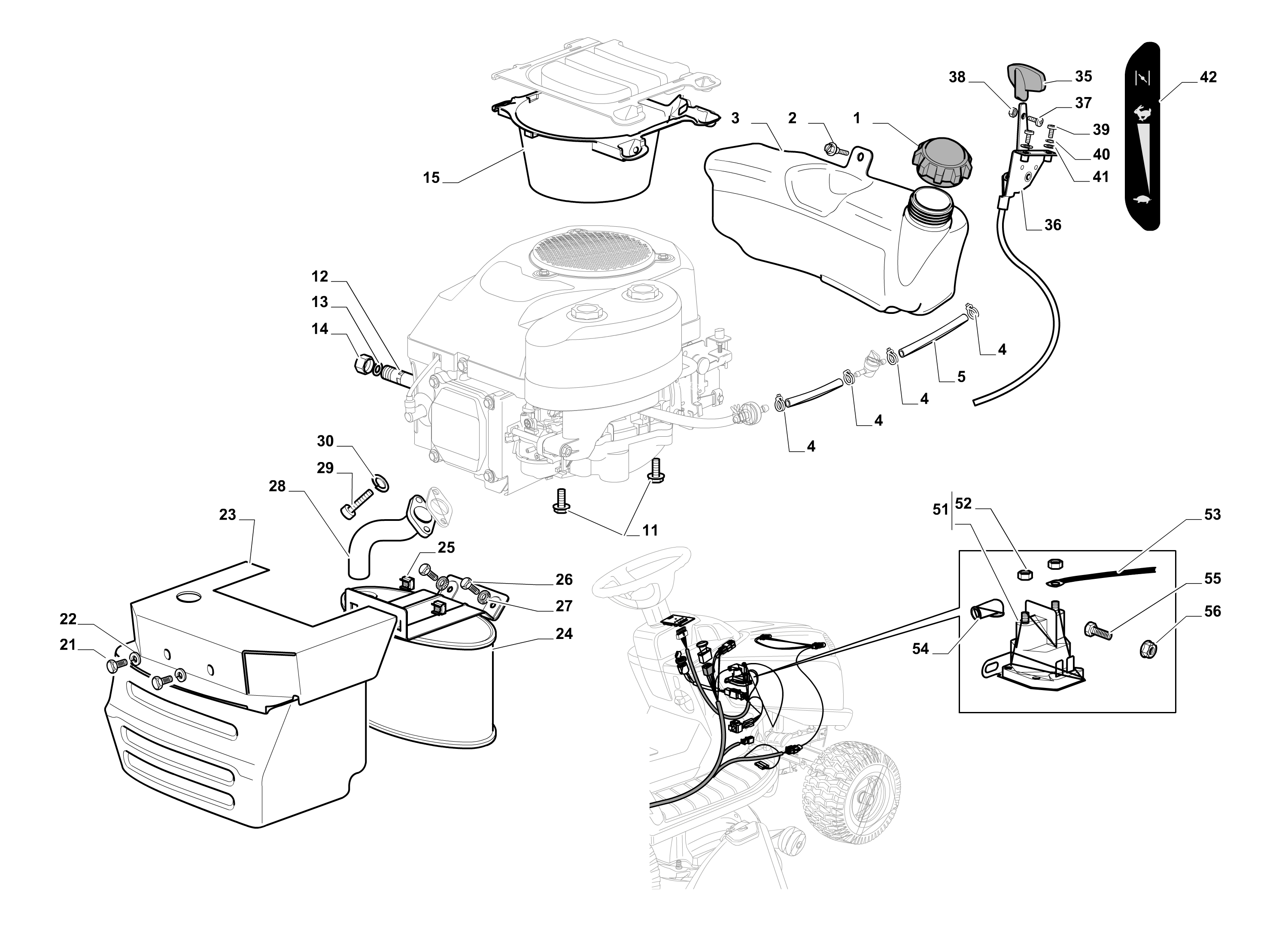 Zbiornik paliwa, Tłumik, Przekaźnik rozrusznika, Ssanie - Schemat